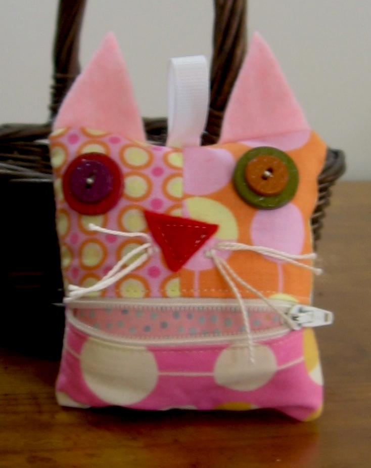 The next favor is a Zipper Critter by Indygo Junction. The pattern comes with three different sizes and three different types of of animals (dog, cat, pig). It’s great for using up scraps and any old zippers you have laying aroud. What’s nice is that you can personalize the fabric choice for each child, or do it all based around a theme. These critters also make nice package decorations – especially the smaller one that is attached to a lanyard. One of these takes about 30 minutes to make (although you can speed things up if you want to make several by cutting them all out at once and sewing them assembly line style).