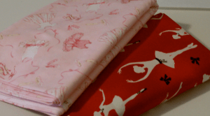 The next project is ballet shoe bags for my friend who runs the dance studio Graceful Expressions.  Each year at her recital, the graduating girls receive a beautifully handcrafted bag (by me) for their ballet shoes.  Apparently, this is a tradition the girls look forward to, so I have to make sure they are not disappointed this year.  There are two different types of ballet fabric  – the pink is for the younger girls and the red for the older ones (it looks more chic).