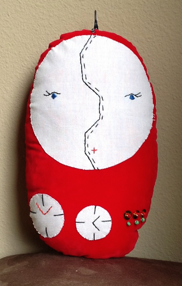 Making this took about 2 hours,  since there is so much hand embroidery on the face and body.  I hope he doesn’t want me to create a full set of stacking dolls for him in the other sizes.
