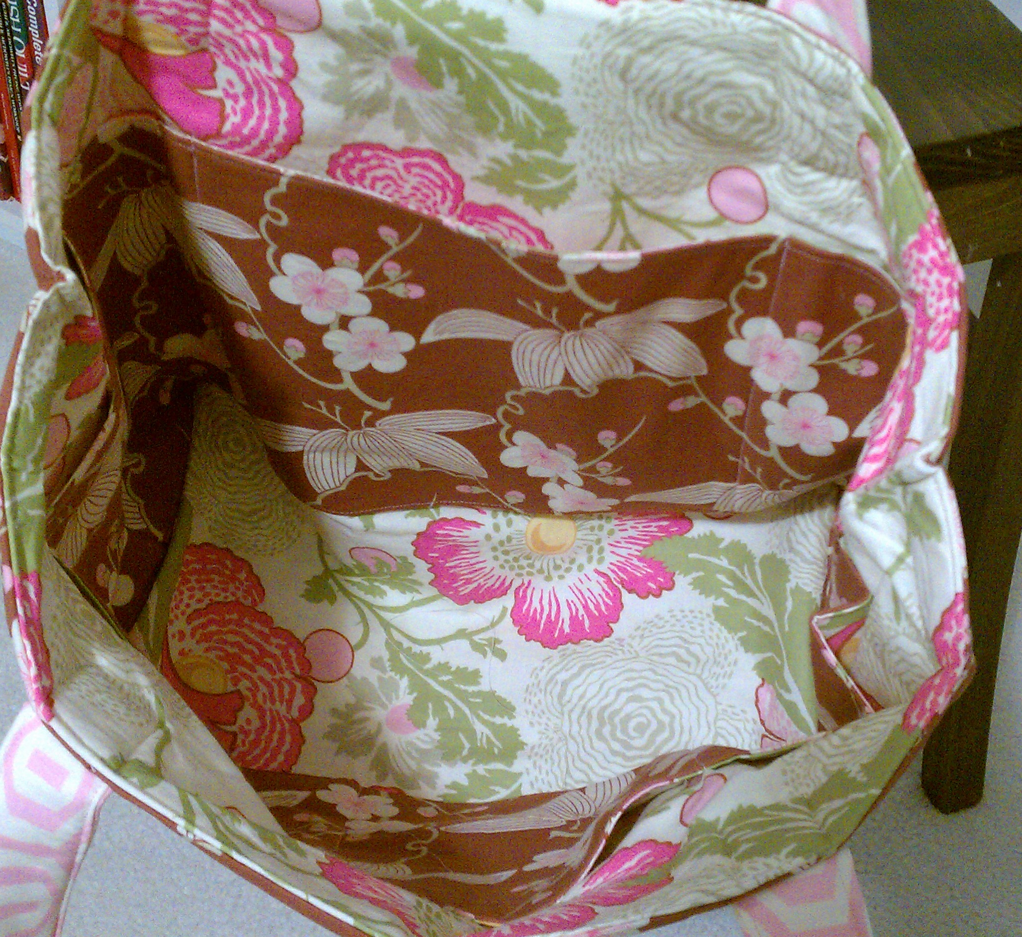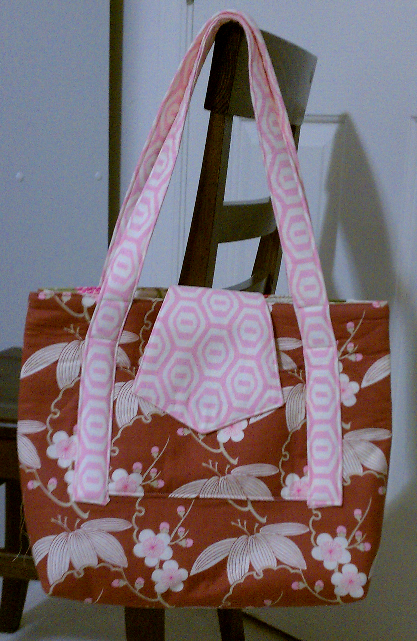 In a few weeks, I’ll be teaching a class at the Whistle Stop Quilt shop. The owner is interested in having someone teach some classes on how to make bags, so I went in and talked with her. While I was there, she showed me this cute new pattern by Anything But Boring called “The Traveler’s Tote.” We both agreed this would make an excellent class for me to teach :).