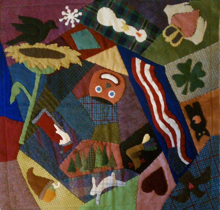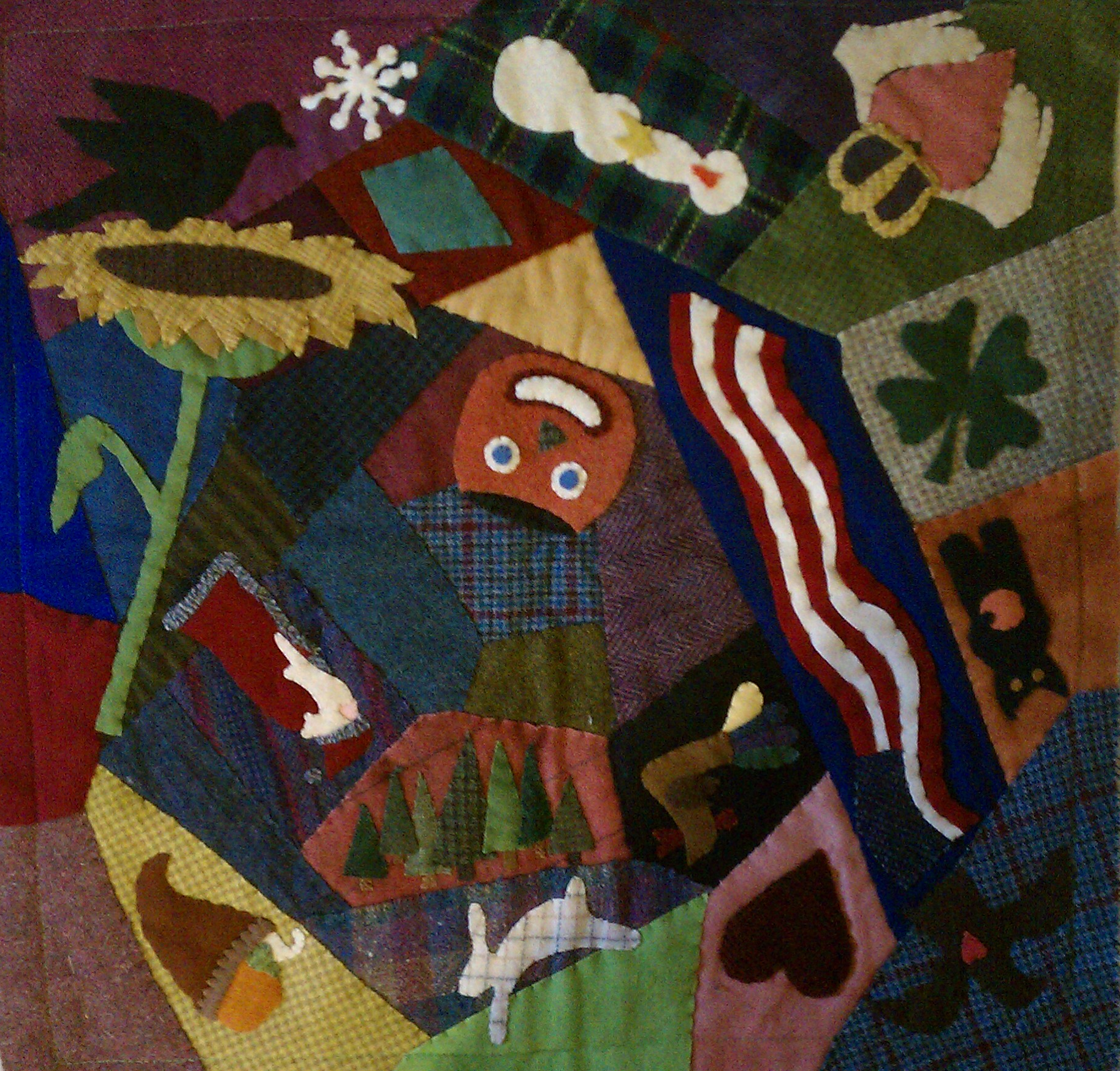 A sample was needed to promote the class, so yesterday and today was spent making it. This tote is very sturdy because fusible fleece is used on the exterior and Decor Bond is used on the lining. The large flap is a great way to show off a favorite piece of fabric or focus fabric. It has tons of pockets (you can never have enough) – two on the outside and pockets all the way around the inside.