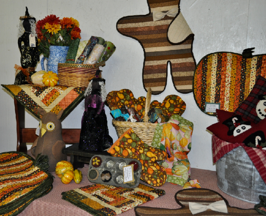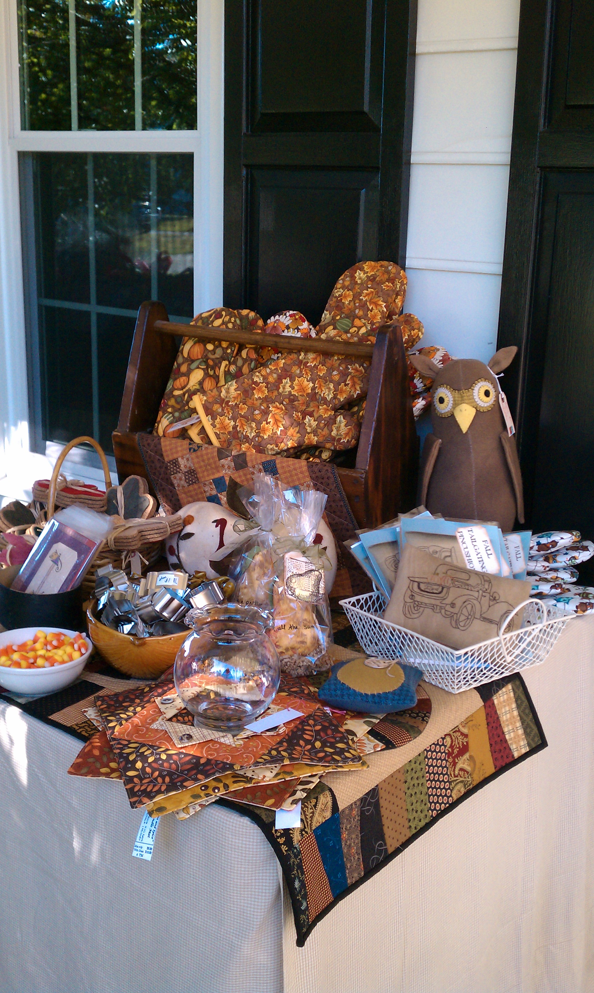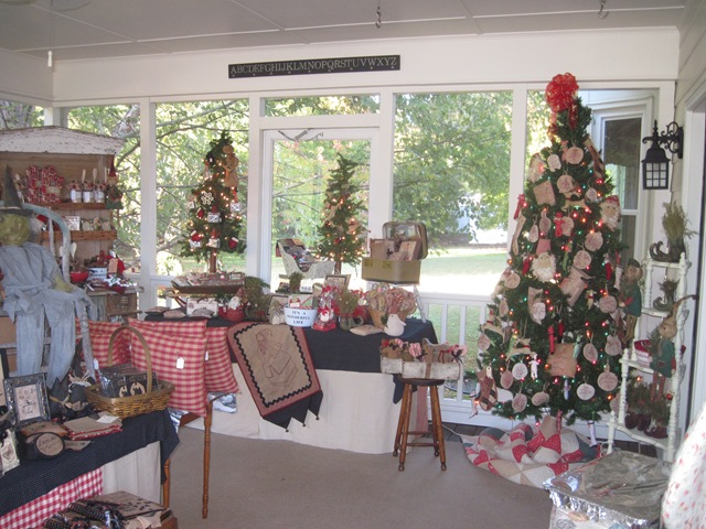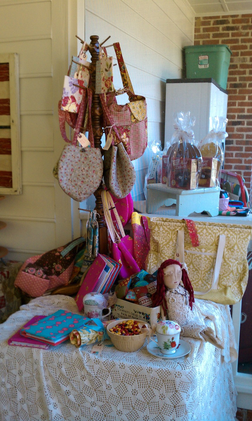 The expo featured several local vendors and some from places as far away as Oregon, Wisconsin, Florida and Texas. My favorite booth, hands down, was Lisa Bonegan’s “Primitive Gatherings” – packed to the brim with wool applique projects, wool, and patterns. And can you see who is in the picture I took at the booth – Ms. Sharon Stewart herself (aka, Liberty Rose). I caught her in the act of making a “few” purchases.