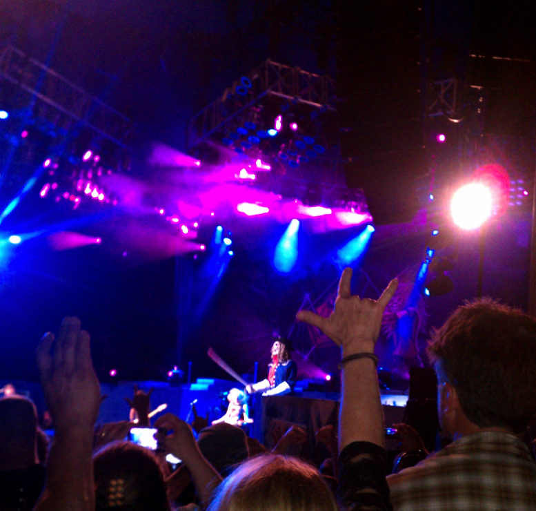 The first one was the kick-off concert for the Iron Maiden U.S. Tour in Charlotte, NC. My husband is a HUGE fan and I got him tickets to this for his birthday. We left Thursday afternoon and arrived in Charlotte just in time to see the Opening Act – none other than Alice Cooper. Fittingly, he ended his set with the classic song “School’s Out for the Summer.”