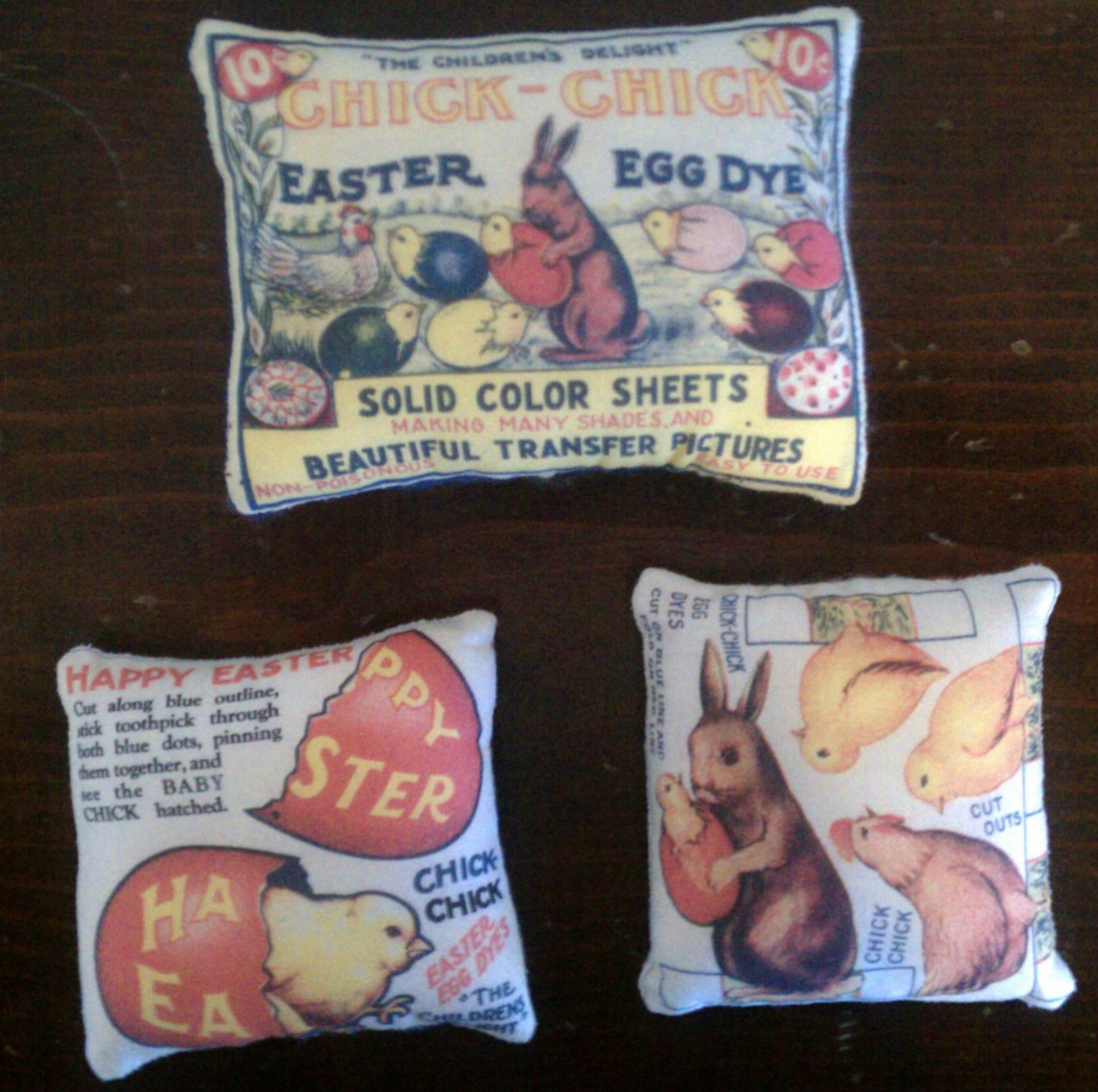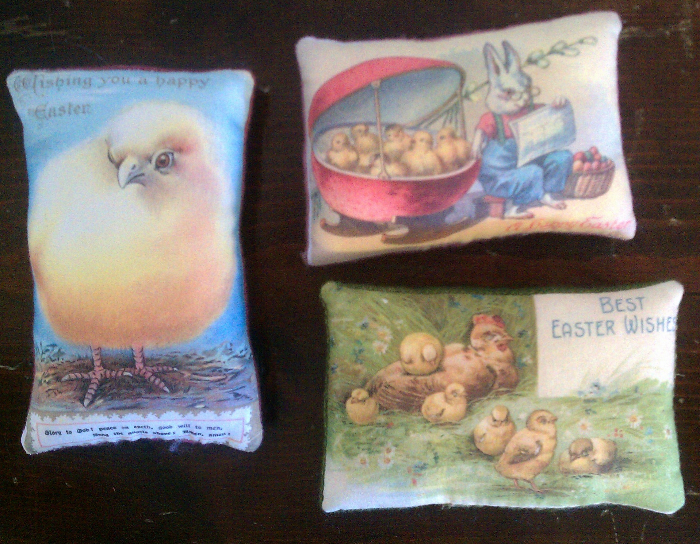 This spring pillows were also inspired by Liberty Rose! These are really easy to stitch up and are great accents for your spring decorating. Pick out a few vintage images (we used postcards) and then transfer them to fabric. You can buy the photo transfer fabric at Jo-Ann’s (bring your coupon). Cut out, sew on a backing, and stuff – viola! The neat thing about this is that you can use any image – there are lots of goods ones the internet, just do a search for “vintage ____ images”.