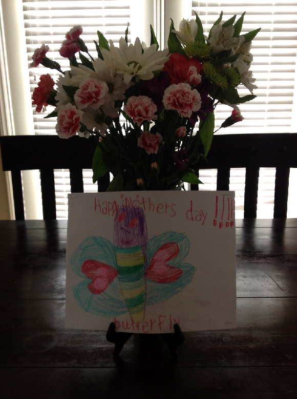 Here is what I had waiting for me when I woke up on Sunday morning. On the other side of the card my son had drawn the entire lifecycle of a butterfly from the egg – too cute!