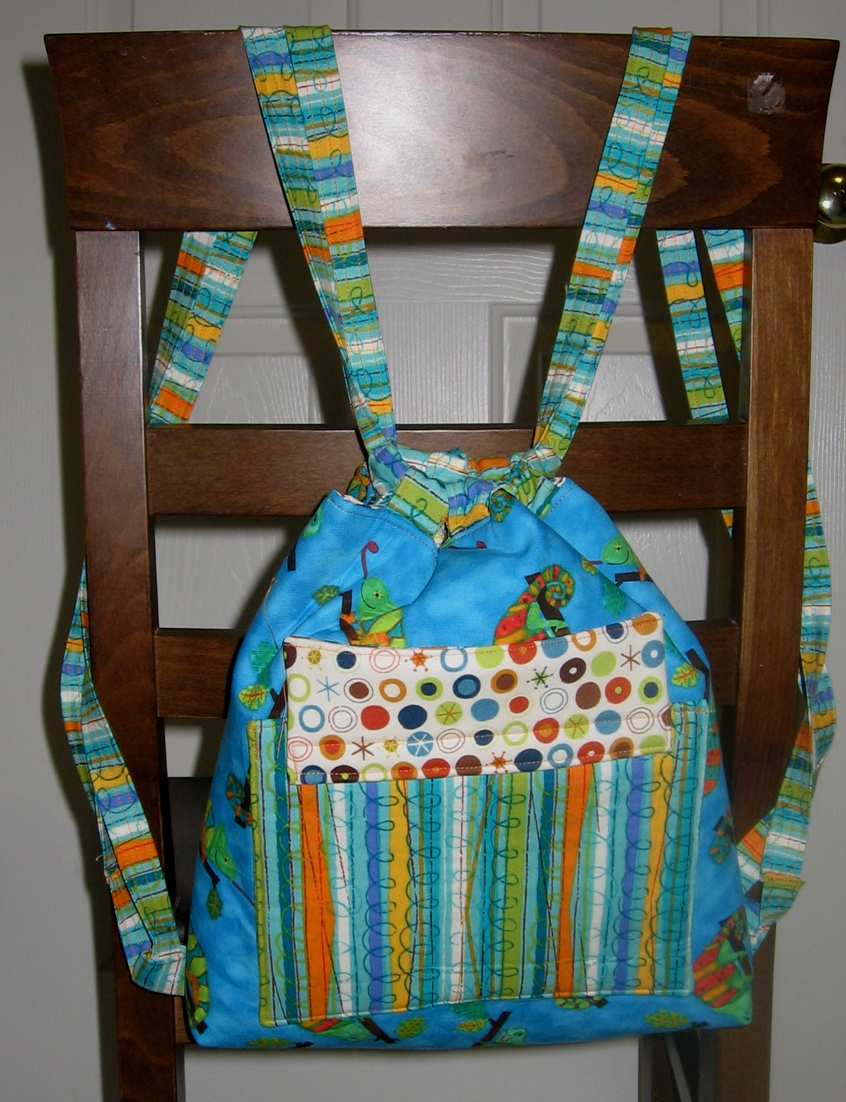 I do think this is a very cute pattern and it is different than the traditional backpack you see. It is easy to open and can easily carry a few books, art supplies, and a small toy or two. The straps are too long for my son, so they will also be shortened for the second attempt.