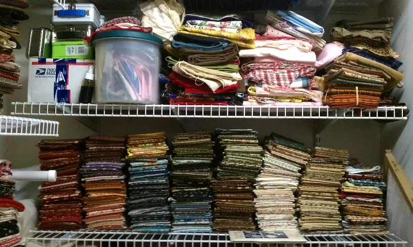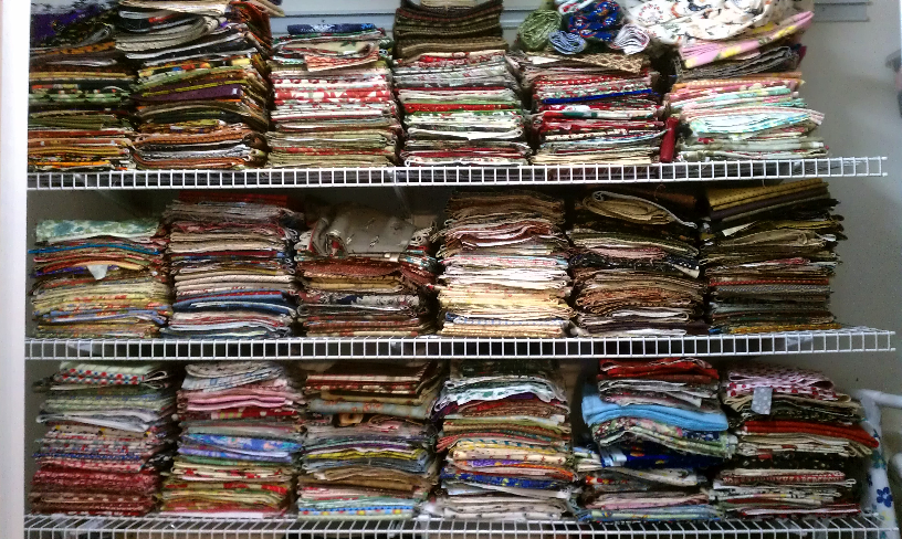 One idea would be have a fabric swap where you invite some friends over to swap out pieces from your stash. This doesn’t solve the storage issue, but maybe it will make it easier to part with the fabric that you aren’t too crazy about and be assured that this fabric is going home with someone who wants it and has a plan for it.