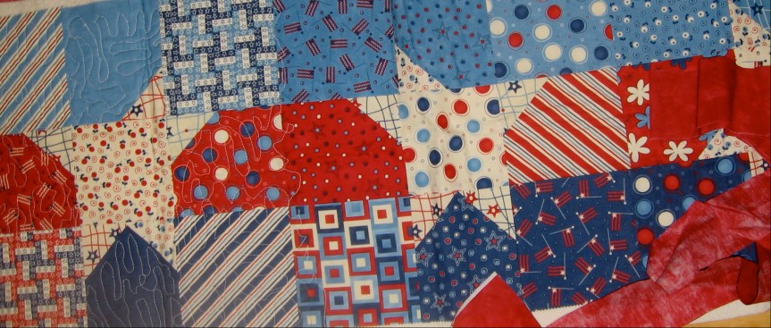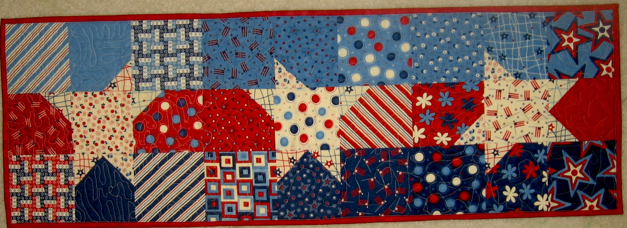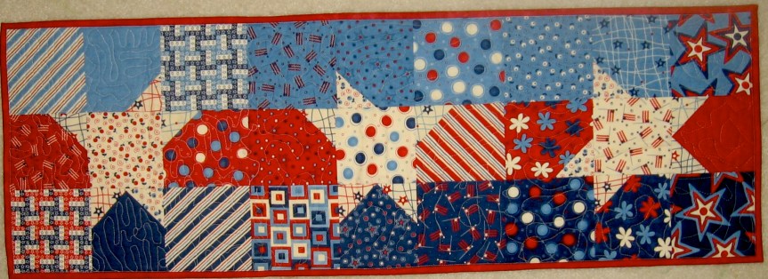 My goal is to finish one UFO a month – so here is the one for February – the Patriotic Table Runner! I machine quilted this myself on my Bernina with the BSR. This was one of my first attempts and I can tell that I need a lot of practice with my free motion quilting.